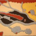 His repertoire of images includes paintings that map and name country reflecting the artist’s intimate knowledge of a vast country as well as documents of traditional stories and corroborees, cattle mustering and camel treks. Painted in natural ochres and pigments, his traditional stories are characterized by a series of small figures “dotting” the canvas and are presented as playful, joyous celebrations of his life and cultural commitments.